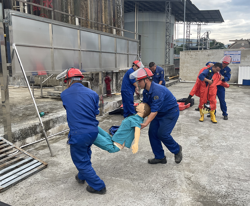為進(jìn)一步提高員工安全意識,增強人員觸電、被化學(xué)品灼傷及受限空間的應(yīng)急處置和滅火器實操的能力,結(jié)合公司實際,2024年9月26日下午,海龍化工在化工廠區(qū)進(jìn)行安全生產(chǎn)應(yīng)急演練。
