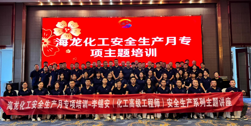 為進一步加強企業(yè)安全生產(chǎn)主體責任落實,提升安全生產(chǎn)管理水平,切實貫徹落實2025年全國安全生產(chǎn)月“人人講安全、個個會應急——查找身邊安全隱患”的主題。2025年6月7日,海龍化工“安全生產(chǎn)月專題培訓活動”在蕉嶺迎賓館順利開展,本次活動邀請了化工高級工程師李錫安老師為大家授課,公司董事長賴仕海先生,總經(jīng)理龍偉國及古洵先生出席了此次活動。